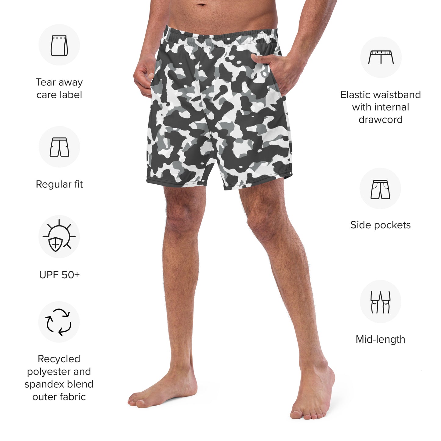 Everyday Black and White Camo Men's Swim Trunks