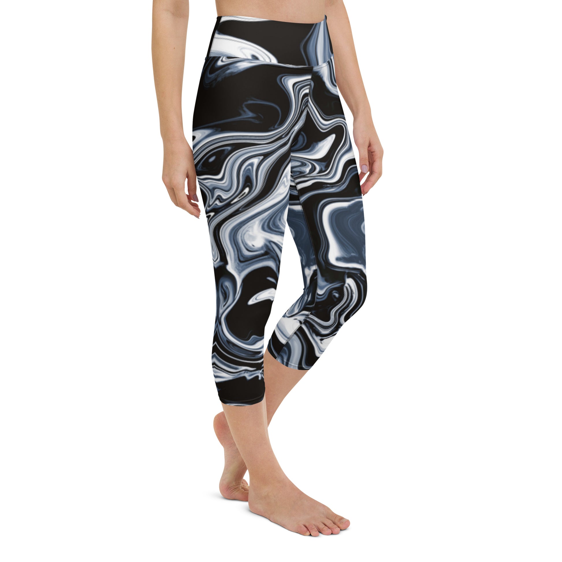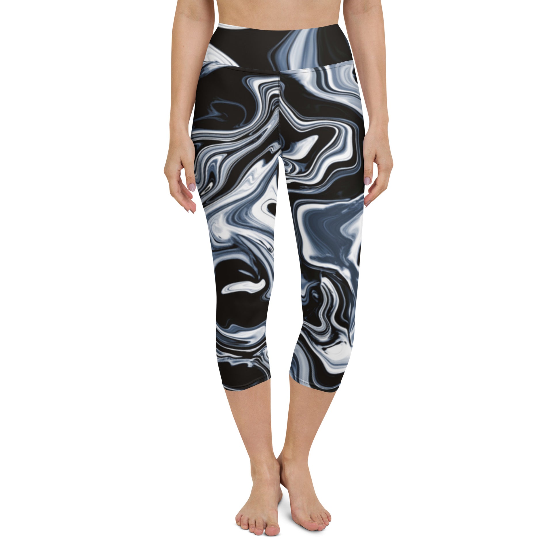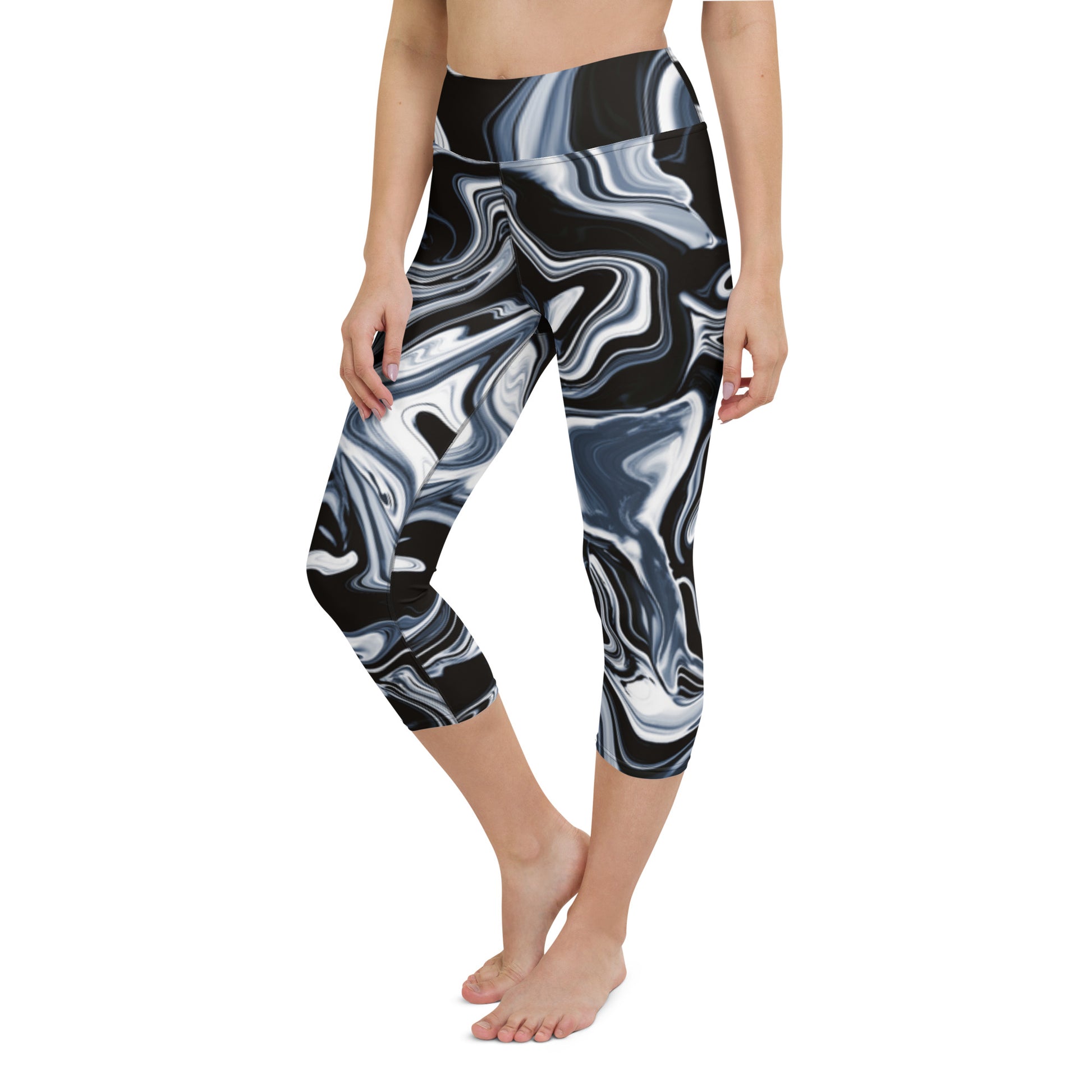 The high elastic waistband isn't just holding your leggings up; it's holding up a banner that screams, "I'm here to slay." Picture it: the perfect mid-calf length, a sweet spot between "Look at me!" and "Let me breathe!" – sass with a side of practicality.